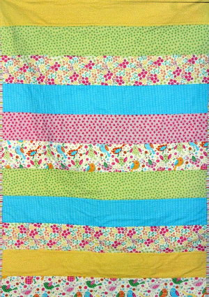 This strip quilt, made out of flannel fabric, makes a great gift or beginner project.