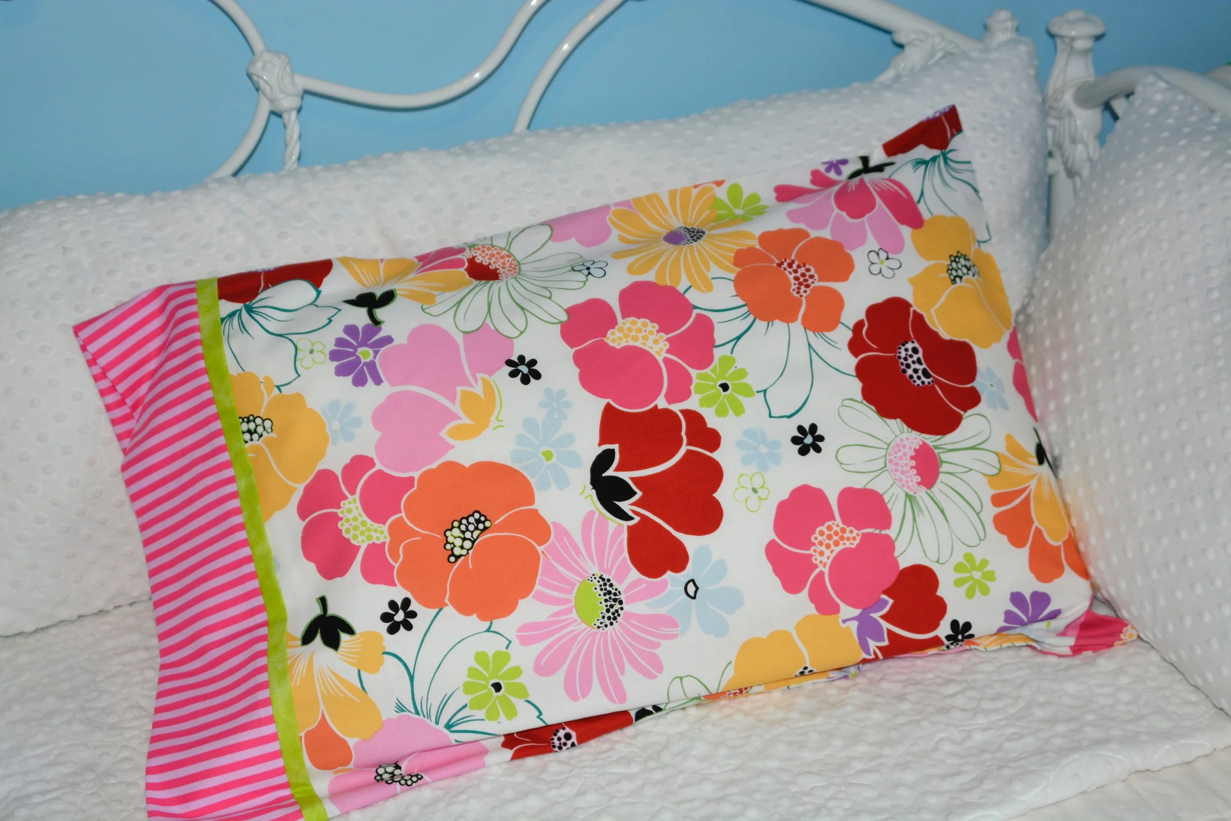 In this tutorial we show you how to make a quick and easy four seam pillow case. It's simple to do, and great for a beginner project. Have fun personalizing your pillow case with super cute fabric! To make this easy project you can watch our step by step video tutorial and follow along with our free printable pattern.